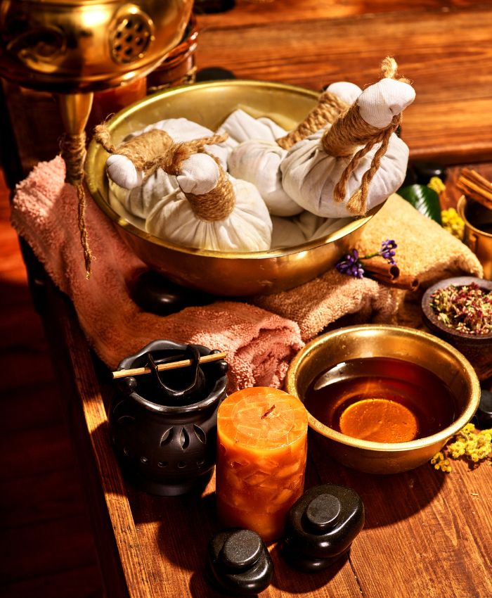 Depending on your needs, treatments may include Abhyanga (oil massage), Shirodhara, Basti (medicated enema), Virechana (detox), Nasya (nasal therapy), and other Ayurvedic therapies.