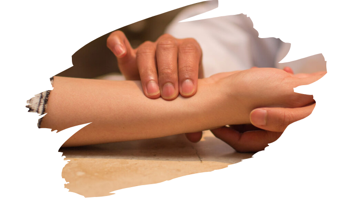 Our doctor will place three fingers on your wrist to sense your pulse.